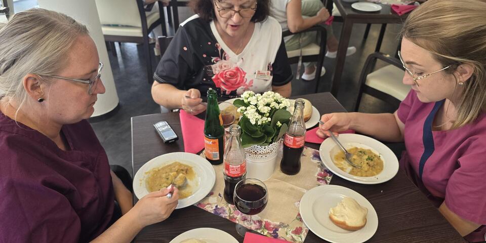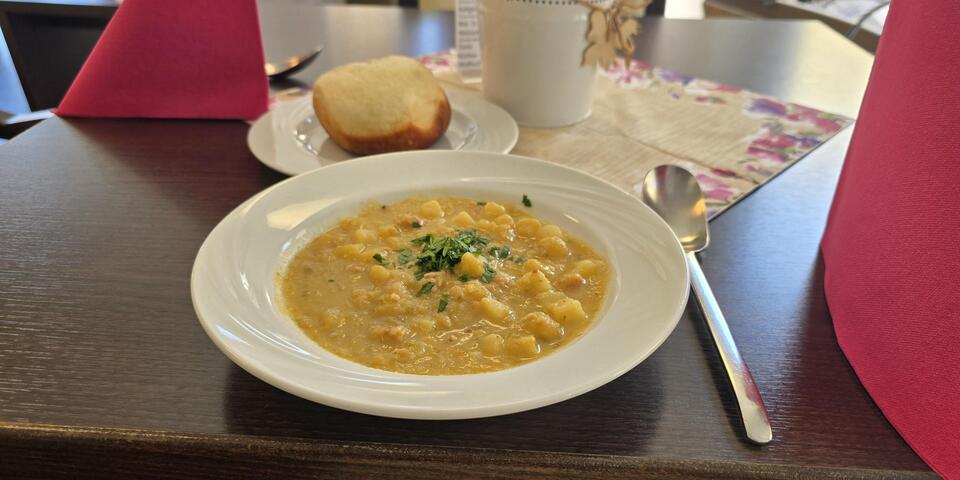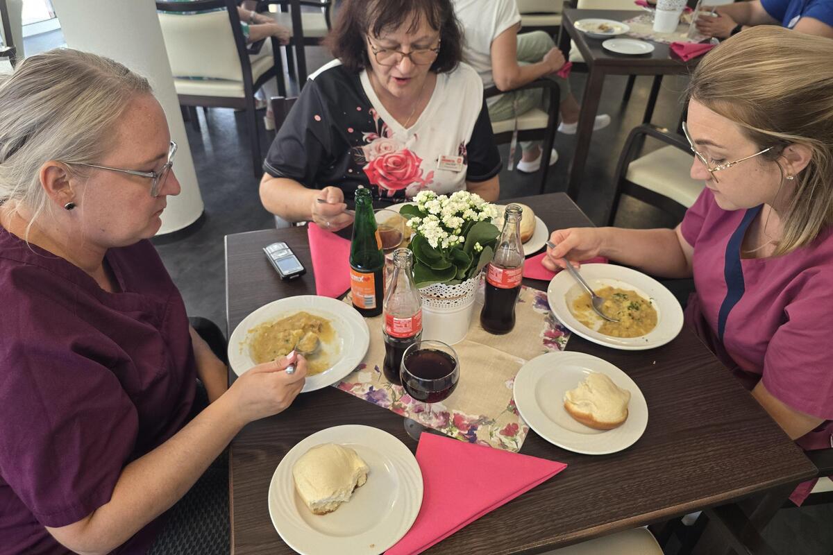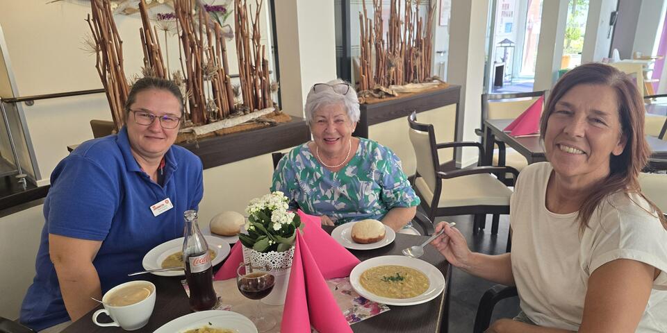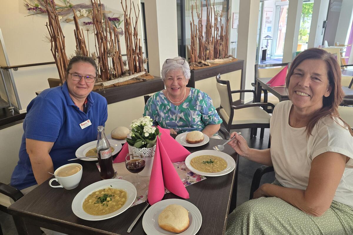 Auch am traditionellen Kerwemontag wurde gefeiert. Auf den Tisch kamen Grumbeersupp und Dampfnudel – ein Stück Pfälzer Heimat, das bei allen gut ankam. Gemeinsam ließen sich Bewohner wie Mitarbeitende die Spezialitäten schmecken und genossen die gemütliche Atmosphäre.