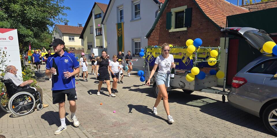 In Kleinniedesheim war wieder Kerwezeit – und mittendrin unsere Bewohnerinnen und Bewohner des Johanniter-Hauses. Am Kerwesonntag zog der farbenfrohe Festumzug direkt an unserem Haus vorbei. Bei strahlendem Sonnenschein und spätsommerlichen Temperaturen hatten sich viele Bewohner vor dem Eingang versammelt. Mit erfrischenden Getränken und bester Laune genossen sie das bunte Treiben.