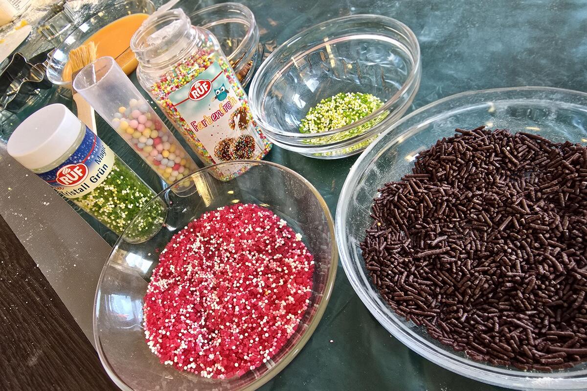 Schon am frühen Nachmittag zog ein herrlicher Duft von Butter und Vanille durch das Haus. Mit viel Eifer wurde Teig ausgerollt, das Nudelholz bemehlt und die Arbeitsflächen füllten sich rasch mit Sternen, Tannenbäumen, Herzen und anderen weihnachtlichen Motiven. Die ausgestochenen Plätzchen wurden mit großer Sorgfalt verziert – mal bunt mit Zuckerperlen, mal zart glasiert oder ganz klassisch gehalten.