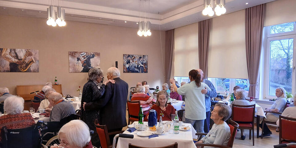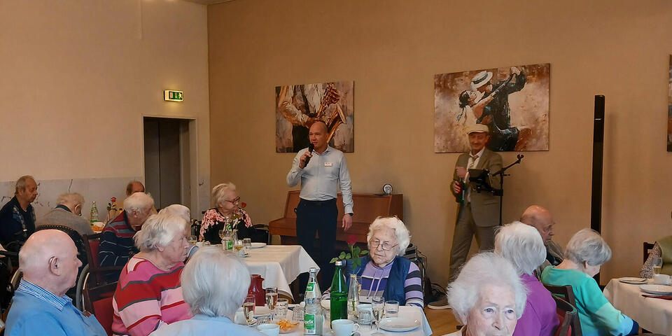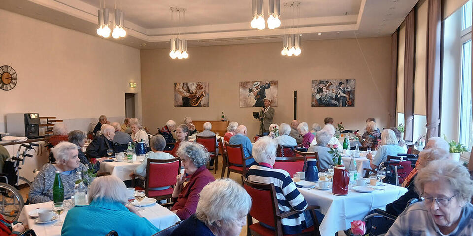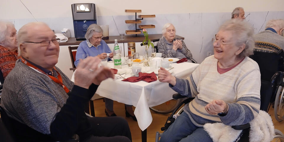 Pünktlich zur Kaffeezeit haben sich unsere Bewohnerinnen und Bewohner versammelt, um zunächst bei einem Sektempfang einer Neujahrsansprache unseres Einrichtungsleiters Stefan Tews zu lauschen. Im Anschluss daran gab es - neben den obligatorischen Berlinern –kleine köstliche Häppchen und das eine oder andere Bier oder Glas Sekt. Bei Blätterteigtaschen mit Spinat und Sesam-Ecken wurde geklönt und viel gelacht.