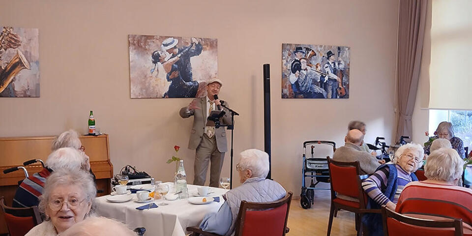 Und da zu einer richtigen Feier natürlich auch ein Musikprogramm gehört, begeisterte ab 15 Uhr der Musiker Uwe Oswald mit einem abwechslungsreichen und mitreißenden Programm das Publikum. Er gab Schlager wie „Auf der Reeperbahn nachts um halb eins“ oder „Wenn bei Capri die rote Sonne im Meer versinkt“ zum Besten, sodass ausgiebig geklatscht und geschunkelt, ja sogar getanzt, wurde!