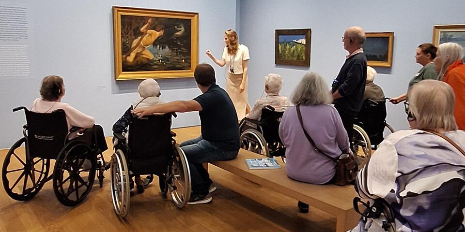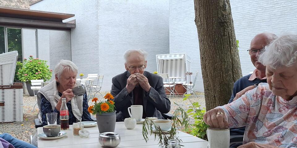 Die Bewohnerinnen und Bewohner folgten gespannt der Führung. Bei Kaffee, Tee und Heißer Schokolade in Grethjens Gasthof im Museumsgarten haben alle über die einzelnen Werke geredet und geschwärmt.
