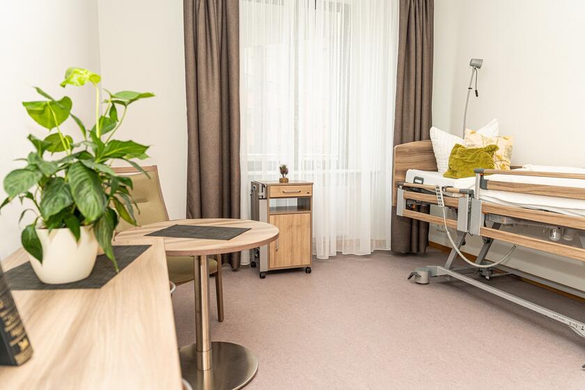 Zu unseren komfortablen Pflegezimmern gehören ein Bad mit WC und Dusche sowie ein Telefon- und TV-Anschluss. Dank Notrufanlage sind die Mitarbeitenden Tag und Nacht für Sie erreichbar, alle Zimmer sind mit einer hochwertigen Grundausstattung versehen. Wir möchten, dass Sie sich bei uns rundum wohlfühlen – gestalten Sie Ihr Zimmer gerne nach Ihren Wünschen mit liebgewordenen Dingen, die Ihnen wichtig und vertraut sind. Gemeinsam besprechen wir, in welchen Alltagsdingen wir Ihnen zur Hand gehen und welche pflegerischen oder hauswirtschaftlichen Angebote Sie bei uns jederzeit nutzen können. Auf Wunsch vermitteln wir Ihnen gerne weitere externe Dienstleistungen von der Fußpflege bis hin zur Physiotherapie.
