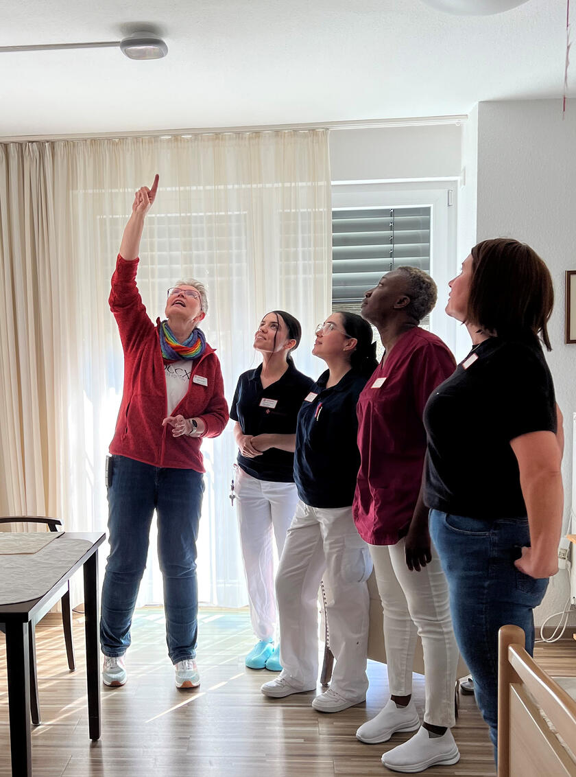 Am 13. März 2025 wurden durch die Firma hum-systems in einem praxisnahen Workshop die letzten Informationen kurz vor Start- und Einführungsphase mit den Mitarbeitenden des Leitungsteams im Johanniterhaus und den Kooperationspartnern von der Uni und Hochschule Bremen ausgetauscht. Die Testung des Systems an diesem Tag auf dem Wohnbereich und in den Zimmern der Bewohnerinnen und Bewohner verlief erfolgreich, so dass der Startbeginn von Livy Care auf den 24. März 2025 datiert werden konnte.