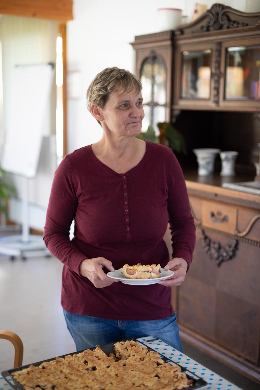 Birgit liebt es, für die Familie zu backen. Mal ist es einer der Brüder, der zum Kaffee kommt, mal ihr Sohn mit der zukünftigen Schwiegertochter. Der Apfelkuchen auf dem Beifahrersitzt ist jedoch nicht für die Familie bestimmt. Als Pflegehelferin in der ambulanten Pflege unterstützt Birgit ihre Patientinnen und Patienten zuhause. Für viele ist ihr Besuch ein fester Bestandteil des Alltags, denn Birgit begleitet sie über Monate, oft auch über Jahre hinweg. Sie ist die gute Fee, die Frühstück oder Abendbrot zubereitet, den Blutdruck misst, bei der täglichen Körperpflege zur Hand geht. Und die hin und wieder ein köstliches Stück Kuchen dabeihat, um ihnen den Tag zu versüßen.