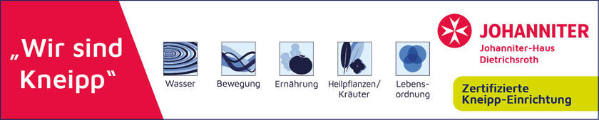 In unserem Johanniter-Haus Dietrichsroth setzen wir auf die Erkenntnisse des Pfarrers Sebastian Kneipp, der eine ganzheitliche Gesundheitslehre entwickelte. Seine Naturheilmethoden wirken sich vorteilhaft auf die Gesundheit pflegebedürftiger Menschen aus und kommen deshalb bei uns zur Anwendung. Wasser, Bewegung, Heilpflanzen, Ernährung und eine ausgewogene Lebensweise spielen dabei eine zentrale Rolle. Ob Bäder, Wassertreten, Gymnastik, regionale Kost, frische Kräutertees oder Entspannungsangebote, wir stimmen unsere Behandlungspläne individuell auf die persönliche Situation ab und passen sie fortlaufend an – so können wir nachweislich die Lebensqualität steigern.