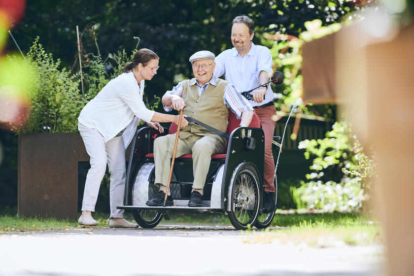 Eine Fahrt mit der E-Bike-Rikscha ist immer ein Highlight für unsere Bewohnerinnen und Bewohnern. Viele sind nicht mehr so mobil wie früher. Mit einer Rikschafahrt ermöglichen Sie Ausflüge in die Stadt, das Umland und ihre ehemaligen Wohnviertel. Mit einem kleinen Einkauf, einer Runde Eis essen oder bei einer gemütlichen Fahrt durch die Stadt erweitert sich der Bewegungsradius unserer Bewohnerinnen und Bewohner um ein Vielfaches. Es gibt keine festen Routen.