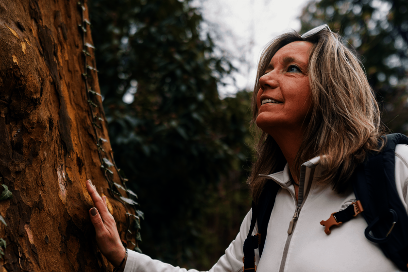 „Mein Mann hat mich schon oft für verrückt erklärt – aber wenn ich auf meinem Wanderweg unterwegs bin, kann ich danach etwas über jeden Baum, jede Blume und jeden Grashalm erzählen. Für mich ist Wandern nicht einfach nur schnurstracks 30 Kilometer geradeaus zu gehen. Für mich bedeutet Wandern gänzlich in meiner Umgebung aufzugehen. Ich kann mich stundenlang mit meinem Hund ins Gras setzen, und mir Pflanzen, Wiesen und Wälder ganz genau ansehen.