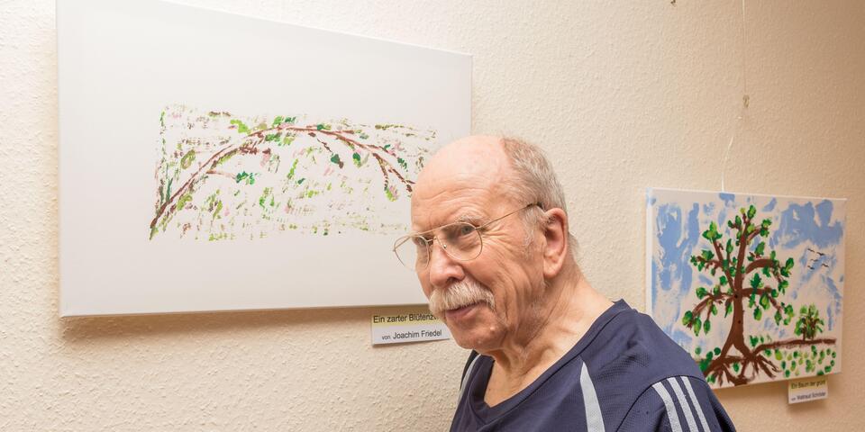 Mein Freund, der Baum, lebt“, und er tut es so ausdrucksstark, wie es nur der Kunst gelingen kann! Das können Besucher der 12. Vernissage im Johanniter-Haus Waibstadt bestätigen. Im Juni hatten sich die Senioren in drei künstlerischen Sitzungen unter therapeutischer Begleitung von Heidrun Fischer-Hamann mit dem Thema „Bäume“ beschäftigt (wir berichteten). Jetzt wurden alle Gemälde in einer stimmungsvollen Vernissage der Öffentlichkeit vorgestellt. 24 Werke, wie sie unterschiedlicher nicht sein können, zieren in den kommenden Wochen die Wände der Cafeteria. Wer sich für einen wertschätzenden Besuch der Galerie Zeit nimmt, kann die „Techniken“ bewundern, die solch individuelle Werke zaubern. Die innere Verbundenheit zwischen Künstler und Bild zeigt sich auch in den sprechenden Titeln wie „Frühlingserwachen“, „Der alte Birnbaum“, „Die Weide“, „Jasmin“ oder „Der schlanke Baum“.