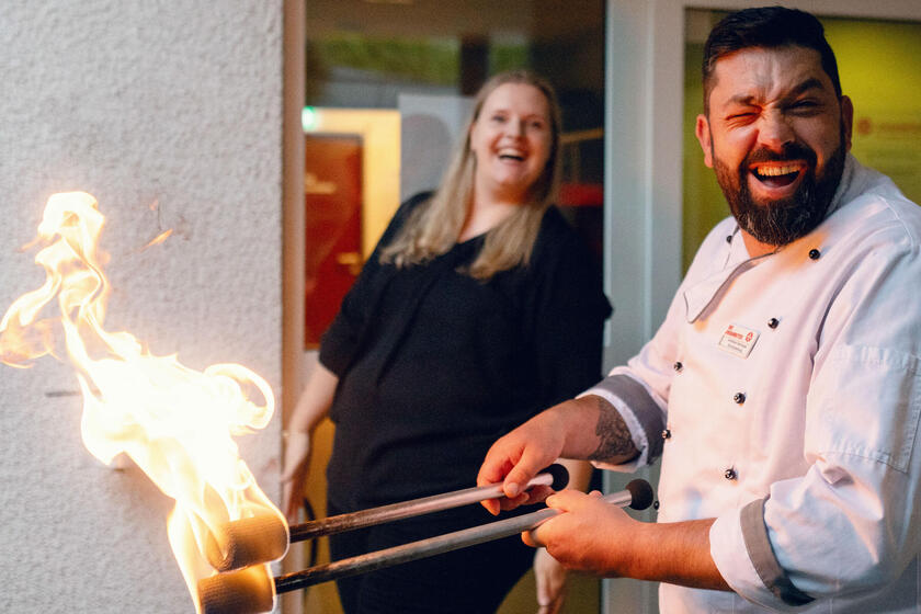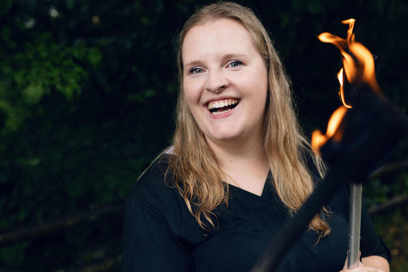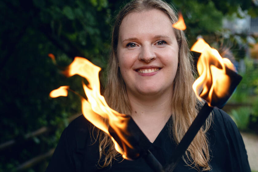Als Leiterin der Hauswirtschaft bin ich heute rundum glücklich! Mit den vier Häusern und unserem Café Rosenstein habe ich viel zu tun, aber es macht großen Spaß. Bei Festen gebe ich auch schon mal meine Zirkuskünste zum Besten. Als Kind habe ich mit meiner Zwillingsschwester ein besonderes Hobby gehabt: Für eine Varieté-Show im Hort lernten wir, wie man brennende Pois und Keulen schwingt! Das mache ich bis heute und habe es auch schon für die Bewohnerinnen und Bewohner vorgeführt. Da haben alle große Augen gemacht!