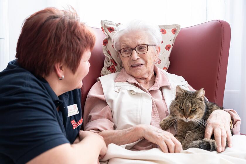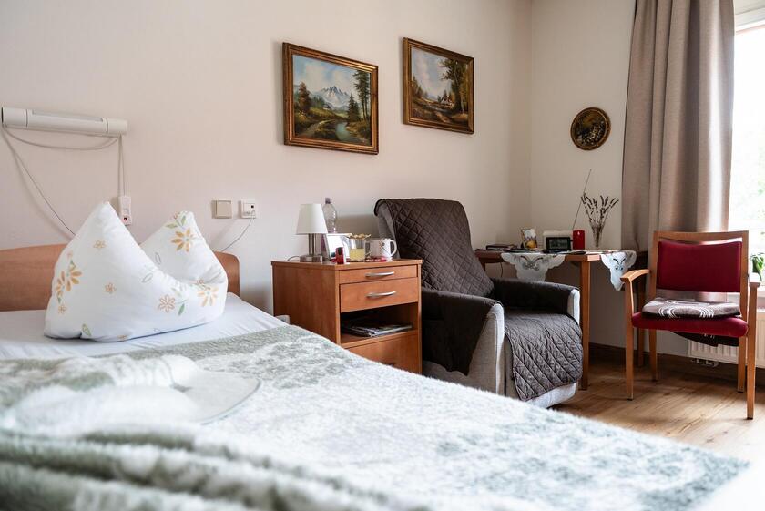 Zu unseren barrierefreien und komfortablen Zimmern gehören ein Bad mit Dusche und WC sowie ein Telefon- und TV-Anschluss. Dank Notrufanlage sind die Mitarbeitenden Tag und Nacht für Sie erreichbar, alle Zimmer sind mit einer hochwertigen Grundausstattung versehen. Wir möchten, dass Sie sich bei uns rundum wohlfühlen – gestalten Sie Ihr Zimmer gerne nach Ihren Wünschen mit liebgewordenen Dingen, die Ihnen wichtig und vertraut sind. Gemeinsam besprechen wir, in welchen Alltagsdingen wir Ihnen zur Hand gehen und welche pflegerischen oder hauswirtschaftlichen Angebote Sie bei uns jederzeit nutzen können. Auf Wunsch vermitteln wir Ihnen gerne externe Dienstleistungen bei uns im Haus von der Physiotherapie über Friseurbesuche bis hin zur Fußpflege. Ist Ihnen ein kleines Haustier ans Herz gewachsen? Nach Absprache können Sie es gerne mit in unsere Einrichtung bringen.