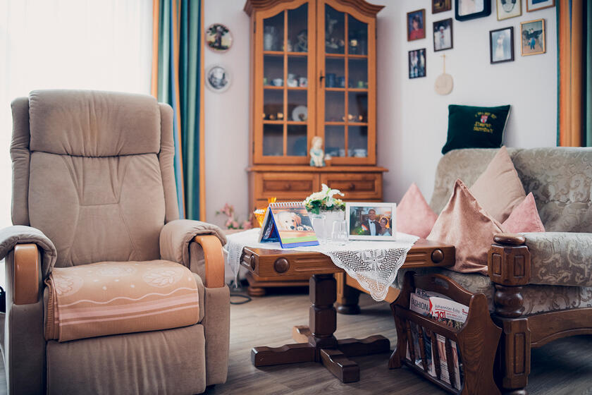 Zu unseren großzügigen Zimmern gehören selbstverständlich ein Bad mit Dusche und WC sowie ein Telefon- und TV-Anschluss, außerdem ein elektrisch verstellbares Pflegebett, ein Kleiderschrank mit verschließbarem Wertfach und ein Nachtschrank. Wir möchten, dass Sie sich bei uns rundum wohlfühlen – gestalten Sie Ihr Zimmer gerne nach Ihren Wünschen mit liebgewordenen Möbeln und anderen Dingen, die Ihnen wichtig und vertraut sind. Gemeinsam besprechen wir, in welchen Alltagsdingen wir Ihnen zur Hand gehen und welche pflegerischen oder hauswirtschaftlichen Angebote Sie bei uns jederzeit nutzen können. Damit Sie bei uns so selbstständig wie möglich leben können, sind auf Wunsch externe Dienstleister für Sie vor Ort, vom Friseur über die Fußpflege bis hin zur Krankengymnastik und Ergotherapie.