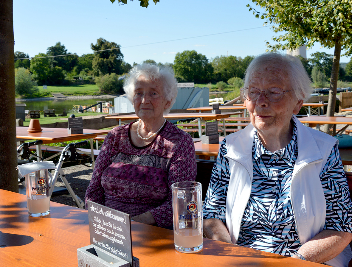Im stilvollen Biergarten des Fährhauses konnte anschließend ein kühles Getränk genossen werden. Einige Ausflügler nutzten die Zeit, um einen kleinen Spaziergang zur Weser zu unternehmen und die friedliche Atmosphäre am Wasser zu erleben.