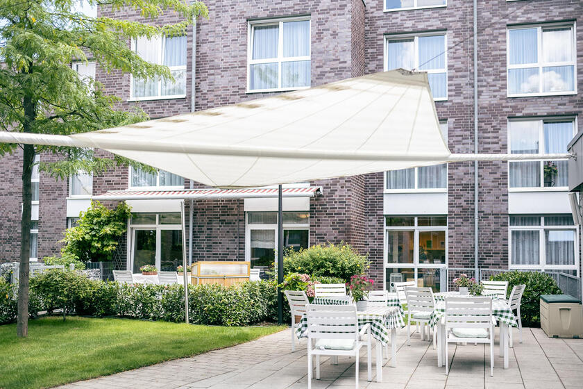 Unser modernes und helles Haus wurde 2008 eröffnet. Es verfügt über 81 vollstationäre Pflegeplätze in Einzelzimmern, die sich auf vier Wohnbereiche verteilen. Hinzu kommen im Erdgeschoss und in den Obergeschossen 30 barrierefreie betreute Wohnungen, die sich auch für Paare eignen. Außerdem können Sie bei uns großzügige Gemeinschaftsräume und zahlreiche schöne und gemütliche Aufenthaltsbereiche nutzen – vom Restaurant und die Cafeteria über Kiosk, Bibliothek und Rezeption bis hin zum Nähstübchen. Hier wie dort kommen unsere Bewohnerinnen und Bewohner gerne zusammen, um sich auszutauschen, Veranstaltungen zu besuchen, Feste zu feiern und gemeinsam eine gute Zeit zu verbringen. Kurzzeitpflegeplätze bieten wir je nach Verfügbarkeit an.