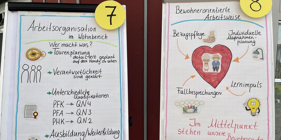 Im Mittelpunkt stand insbesondere das Konzept „KubA– Kompetenz- und bewohnerorientierte Arbeitsorganisation“. Durch kompetenzorientiertes Arbeiten sollen Fachwissen und Fähigkeiten adäquat eingesetzt werden und der Fokus in der Versorgung den Wünschen und Bedürfnissen der Bewohnenden angepasst werden. Darüber hinausgehend sollen im Rahmen der Arbeitsorganisation strukturierte und effiziente Arbeitsabläufe anvisiert werden.