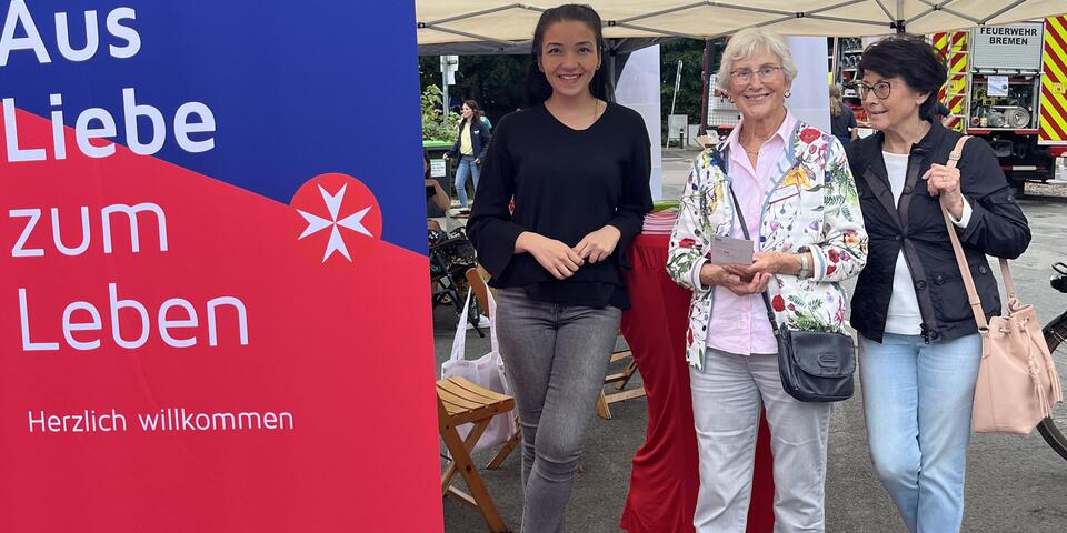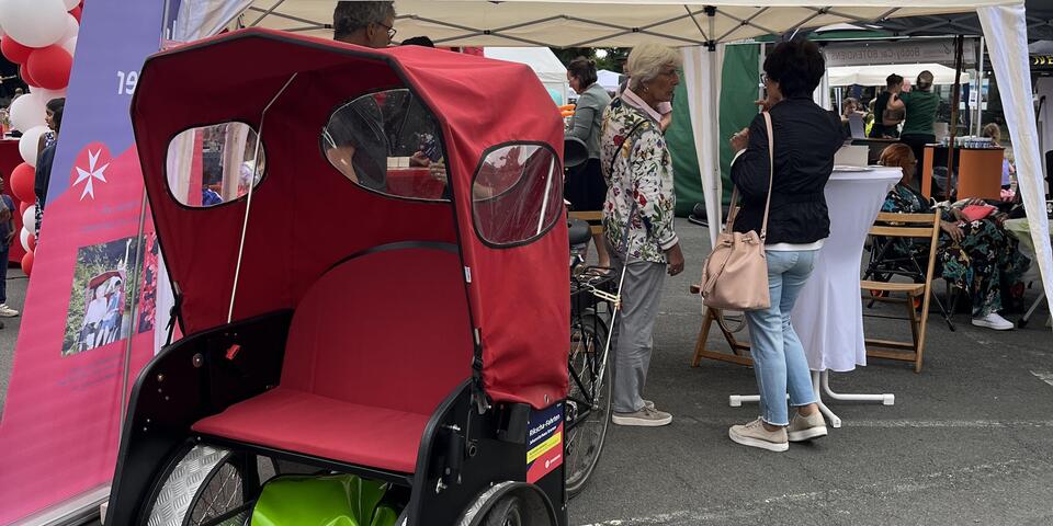 Der Stand der Johanniter wurde tatkräftig von ehrenamtlichen Mitarbeiterinnen und Mitarbeitern sowie von der Leiterin des Sozialen Dienstes und des Begegnungszentrums betreut. Zahlreiche Besucherinnen und Besucher informierten sich über die Angebote des Hauses, Möglichkeiten des Ehrenamts und haben kleine Give-aways erhalten. Ein besonderes Highlight, vor allem für die jüngeren Gäste, war die Fahrradrikscha, mit der kurze Touren durch die Umgebung angeboten wurden.