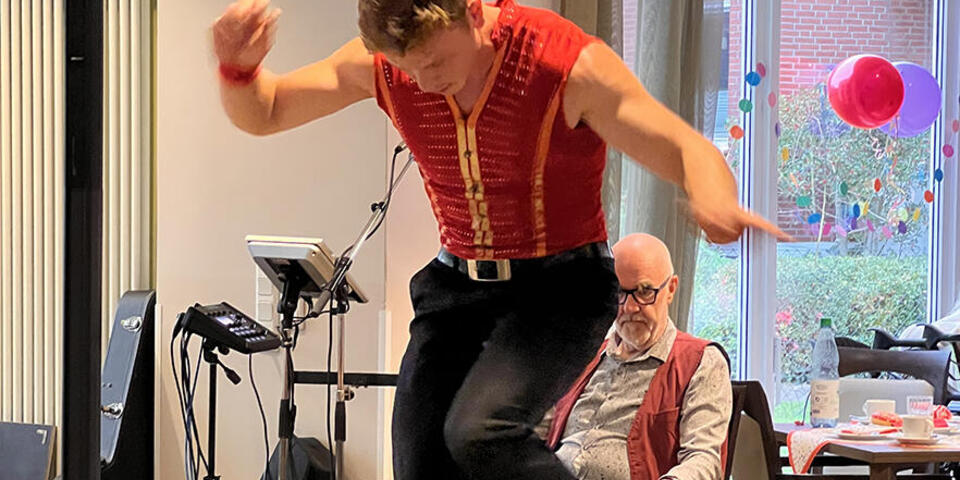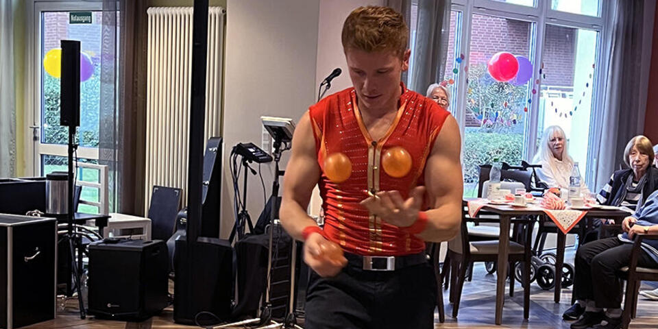 Ein besonderes Highlight war jedoch der Auftritt des Akrobaten Leandro Maatz, der mit seinen Kunststücken alle in Staunen versetzte! Mit unglaublicher Balance, Geschick und Charme zog er das Publikum in seinen Bann. Immer wieder hörte man ein begeistertes „Oh!“ und „Bravo!“ durch den Raum. Manche hielten den Atem an, andere klatschten begeistert. Ein wunderschöner Nachmittag, den wir noch länger in Erinnerung behalten werden!