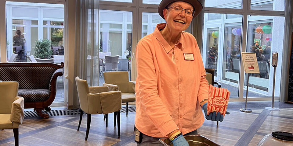 Wenn in Bremen der Freimarkt beginnt, wird auch im Johanniterhaus Bremen gefeiert! Am Montag, den 20. Oktober starteten wir wieder traditionell in unser Freimarkts-Fest im Johanniterhaus - mit viel Musik, Tanz und guter Laune! Bei Kaffee, köstlichen Leckereien und frischem Popcorn kamen Mieterinnen, Mieter sowie Bewohnerinnen und Bewohner zusammen, um gemeinsam einen tollen Nachmittag zu erleben. Für beste Stimmung sorgte zunächst Michael Stumper, der mit bekannten Liedern das Publikum begeisterte. Es wurde gesungen, getanzt, geklatscht und gelacht – die Freude war überall zu spüren. Sogar die Mitarbeitenden aus der Küche kamen vorbei, um mitzufeiern und eine kleine und aktive Tanzpause einzulegen.