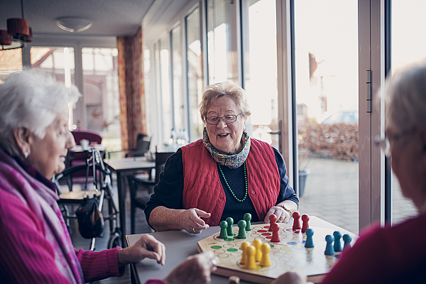 Unsere Gesellschaftszimmer sind bestimmten Themen zugeordnet und bringen immer viel Freude. In der ersten Etage finden Sie die Bastel-Stube, in der handwerkliches Geschick gefragt ist – kreativ angeleitet können Sie hier nach Herzenslust basteln und nähen. In der Tier-Stube in der zweiten Etage warten Vögel, Fische, Meerschweinchen und Hamster darauf, gut versorgt und betreut zu werden. In der dritten Etage gibt es die Studier-Stube: Hier erzählen wir uns Geschichten oder lesen aus Büchern unserer Bibliothek vor. Auch Gesang, Gedichtvortrag, das Stöbern in alten Fotos und auch Gedächtnistraining gehören dazu. Hand aufs Herz, wer kennt heute zum Beispiel noch seinen Konfirmationsspruch?