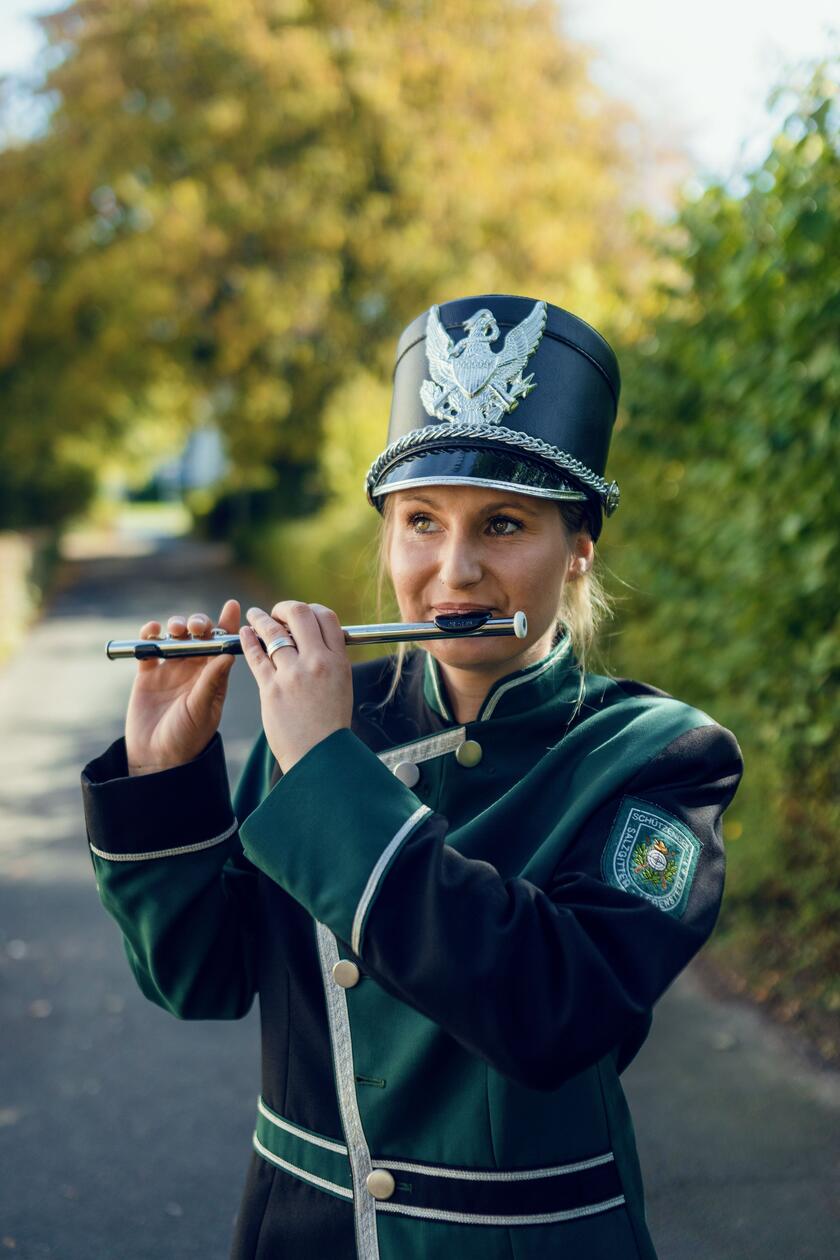 „Wenn ich spiele, denke ich an gar nichts. In meiner Jugendzeit hat mich eine Klassenkameradin das erste Mal zum Spielmannszug mitgenommen – seitdem hat mich das Musizieren nicht mehr losgelassen. Ich spiele seit vielen Jahren Querflöte und kann auch Trompete spielen, was ich allerdings seit Jahren nicht mehr spiele, seitdem ich den Verein gewechselt habe. Sobald ich ein Instrument in der Hand habe, vergesse ich alles um mich herum, das ist wie Magie. Aber es ist nicht nur das Musizieren, was mir am Spielmannszug so gut gefällt – das Musizieren im Verein ist Tradition, die ganz vielen verschiedenen Menschen Spaß macht. Man geht raus und erlebt mit allen zusammen etwas – Vereine sind für mich einfach Geselligkeit. Ich finde Freude am gemeinsamen Feiern und Tun und dadurch entsteht eine echte Gemeinschaft.