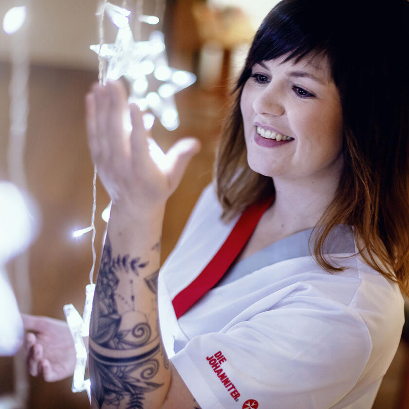 Wenn Martina an die Adventszeit denkt, kommt ihr der Christkindlmarkt in den Sinn. Nicht irgendeiner, sondern jener, der im Foyer des Johanniterhauses Nebra stattfindet. Martina ist hier Wohnbereichsleiterin und stellvertretende Pflegedienstleiterin. Sie hat schon ihre Ausbildung in der Einrichtung gemacht, seit 13 Jahren ist sie schon dabei. Für Martina ist es nicht nur ein Arbeitsplatz. Hier fühlt sie sich Zuhause, ihr Team und die Bewohnerinnen und Bewohner sind für sie wie eine große Familie.