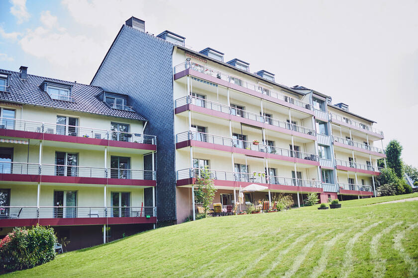 Unser modernes und freundlich gestaltetes Haus ist seit 1981 geöffnet. Es verfügt über 118 vollstationäre Pflegeplätze, die sich auf 80 Einzelzimmer und 19 Doppelzimmer in vier Wohnbereichen verteilen. Bei uns können Sie zahlreiche gemütliche Aufenthaltsbereiche und vielfältige Gemeinschaftsräume für sich nutzen – vom Speisesaal über Kaminzimmer und Bibliothek bis zum Johannessaal. Hier wie dort kommen unsere Bewohnerinnen und Bewohner gerne zusammen, um sich auszutauschen, Veranstaltungen zu besuchen, Feste zu feiern und gemeinsam eine gute Zeit zu verbringen.