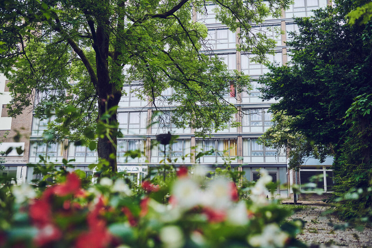 Unser modernes und freundlich eingerichtetes Haus ist das Herz eines weitläufigen Areals. Folgen Sie den hübsch angelegten Wegen durch unseren großen, parkähnlichen Garten im Innenhof. Im 5000 m² großen Areal laden Sie unter altem Baumbestand viele gemütliche Sitzgelegenheiten zum Verweilen ein. Auch unsere Terrassen sind beliebte Treffpunkte für gesellige Runden und persönliche Entspannung.