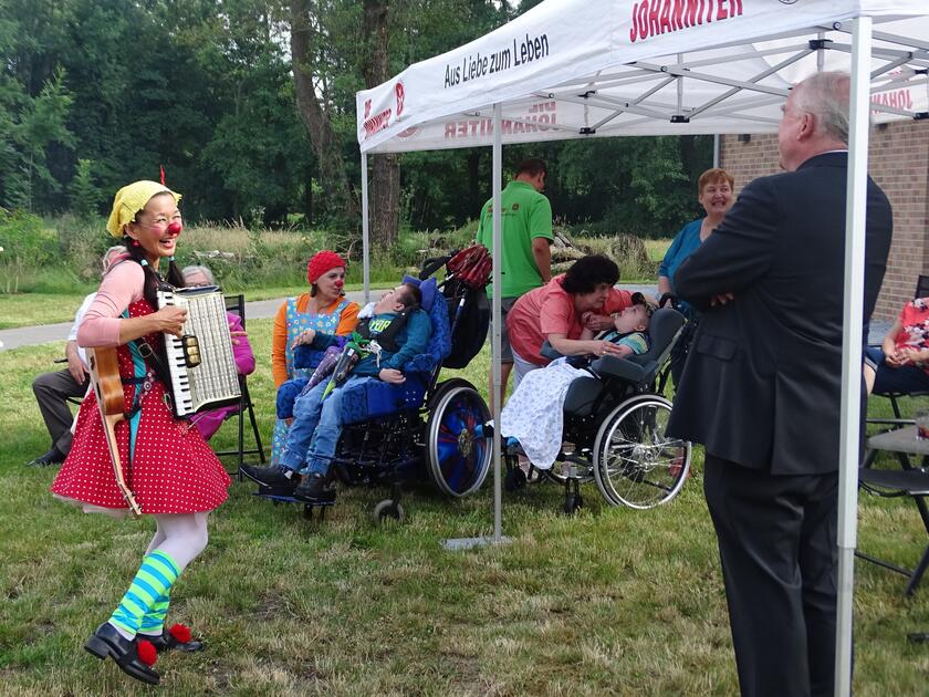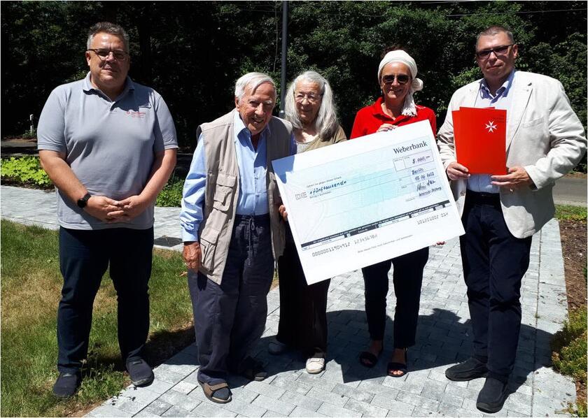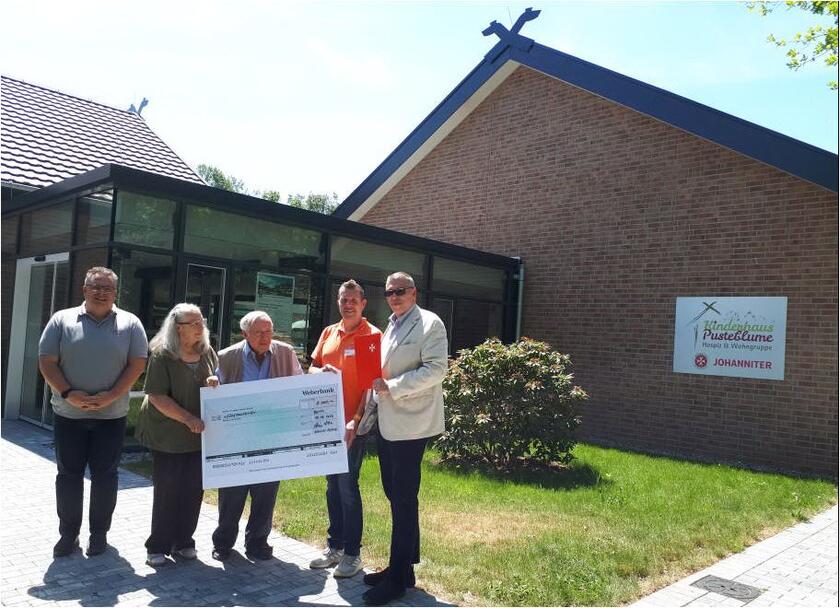 "Bestes Wetter und eine großzügige Zuwendung hatten Frau Barbara und Herr Winfried Heise aus Berlin heute für uns im Gepäck. Beide sind langjährige Stifter der Johanniter-Stiftung. Für ihre diesjährige Unterstützung hatten sie ausdrücklich unser Herzensprojekt ausgewählt. Nach einem Hausrundgang im Kinderhaus und vielen Fragen und Antworten zu unserer täglichen Arbeit vor allem im Hospizbereich fanden sich beide mit Pflegedienstleiter Herrn Lutz Metzner, Regionalvorstand Herrn Andreas Berger-Winkler und Herrn Stefan A. Beck, Beauftragter für Öffentlichkeitsarbeit des Johanniterordens, zu einem gemeinsamen Foto zusammen. Wir sagen DANKE für den Besuch, das große Interesse und natürlich für die tolle Zuwendung!" (Johanniter-Kinderhaus Pusteblume 15.06.2022).
