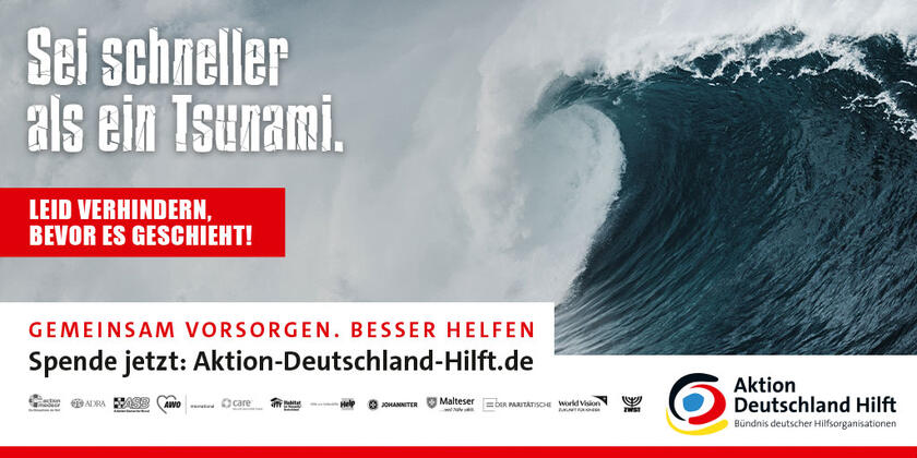 Im Jubiläumsjahr rückt „Aktion Deutschland Hilft“ das Thema Katastrophenvorsorge in den Fokus. Mit einer groß angelegten Jubiläumskampagne unter dem Titel „Sei schneller als die Katastrophe“ weist das Bündnis auf die steigende Relevanz und Dringlichkeit von Katastrophenvorsorge angesichts der Zunahme von Naturkatastrophen und Extremwettereignissen sowie einer wachsenden Weltbevölkerung hin. Denn eine nachhaltige Katastrophenvorsorge erspart Menschen in Risikogebieten großes Leid und hilft, den weltweiten Bedarf an humanitärer Hilfe zu senken.