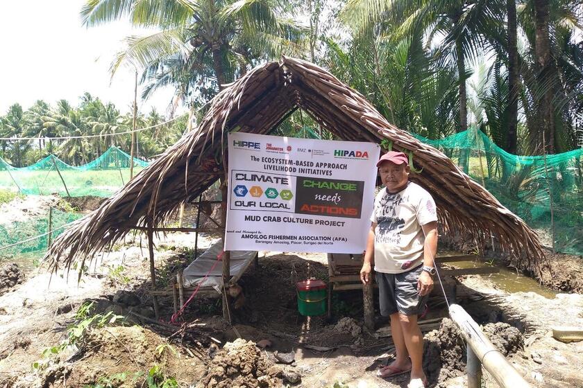Während viele Menschen aufgrund fehlender Flächen Schwierigkeiten haben, ihren Lebensunterhalt zu bestreiten, steht der Amoslog Fisherman's Association (AFA) viel ungenutztes Land in ihrer Gemeinde zur Verfügung. Die Gemeinde lebt hauptsächlich von der Landwirtschaft, weshalb die Mitglieder von AFA vorhatten, das brachliegende Land für den Anbau von Getreide, Gemüse und anderen wertvollen Produkten zu nutzen. Es stellte sich jedoch heraus, dass das Land aufgrund des Anstiegs des Meeresspiegels einen hohen Salzgehalt aufweist und nicht geeignet ist. Als der Organisation das Konzept der umweltbasierten Existenzsicherung (EBA) vorgestellt wurde, gaben sie ihre bisherigen Pläne auf und entschieden sich unter Berücksichtigung der Anpassung an den Klimawandel um. Sie begannen mit dem Bau und der Bewirtschaftung eines Schlammkrabbenteichs. Die Arbeiten starteten im Jahr 2020 und umfassten hauptsächlich die Anlage des Schlammkrabbenteichs im Wert von umgerechnet 27.000 Euro und die Aufzucht der ersten Schlammkrabben. Die Mitglieder überwachen und pflegen heute die Einrichtung auf freiwilliger Basis. Für das anstehende jährliche Stadtfest von Surigao City rechnet die Organisation mit einer steigenden Nachfrage nach Delikatessen wie Krabben und Garnelen. 95% ihrer derzeitigen Ernte wird dann eingefahren und bis zum Ende 2021 sollen mehr als 100.000 Pesos (ca. 1800 Euro) eingenommen werden. Die Einnahmen werden gesammelt, gespart und am Jahresende zu gleichen Teilen unter den Mitgliedern aufgeteilt.