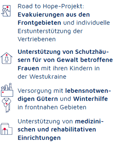 Wir unterstützen seit Beginn des Krieges im Februar 2022 Menschen in der Ukraine, die auf humanitäre Hilfe angewiesen sind.