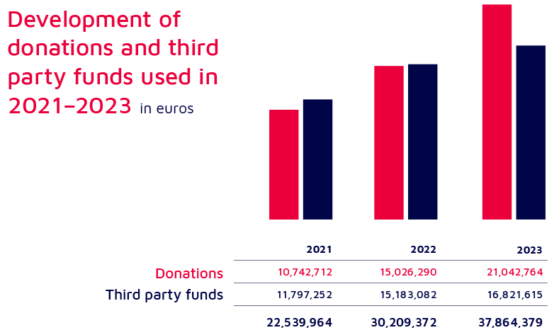 Project expenditure, source of funds, development of donations and third-party funds used and outlook on planned project expenditure for 2024