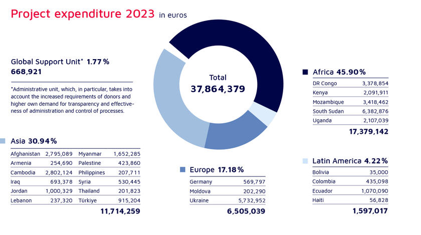 In the third year since the start of the Russian war of aggression against Ukraine, about 40 per cent of the population is dependent on humanitarian aid. People in the east and south-east of the country above all are in need of support. Many are living in the ruins of their homes and are at least temporarily cut off from electricity and water supplies. They can no longer earn an income and their savings have been exhausted.