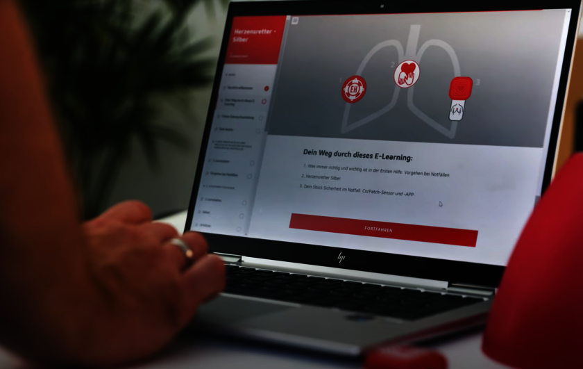 Zudem erinnert Sie die CorPatch®-App alle 3 Monate an ein Training der Herz-Lungen-Wiederbelebung (HLW). Hierfür nutzen Sie das e-Learning, damit Ihr Wissen immer aktuell ist und Sie perfekt auf einen Notfall vorbereitet.