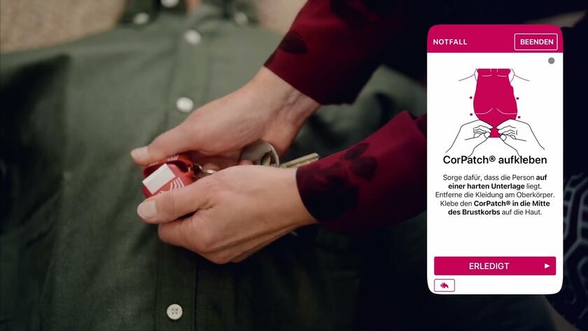 CorPatch® ist ein medizinisches Gerät mit einer kostenlosen App, welches Menschen dazu befähigt, im Falle eines Herzstillstands eine qualitativ hochwertige Herz-Lungen-Wiederbelebung (HLW) durchzuführen. Wenn Sie Zeugin oder Zeuge eines Herz-Kreislaufstillstands werden, unterstützt CorPatch® dabei die Lebenszeichen zu überprüfen, den Notruf zu tätigen und mit Hilfe eines einzigartigen Feedback-Systems selbstständig Reanimationsmaßnahmen korrekt durchzuführen.