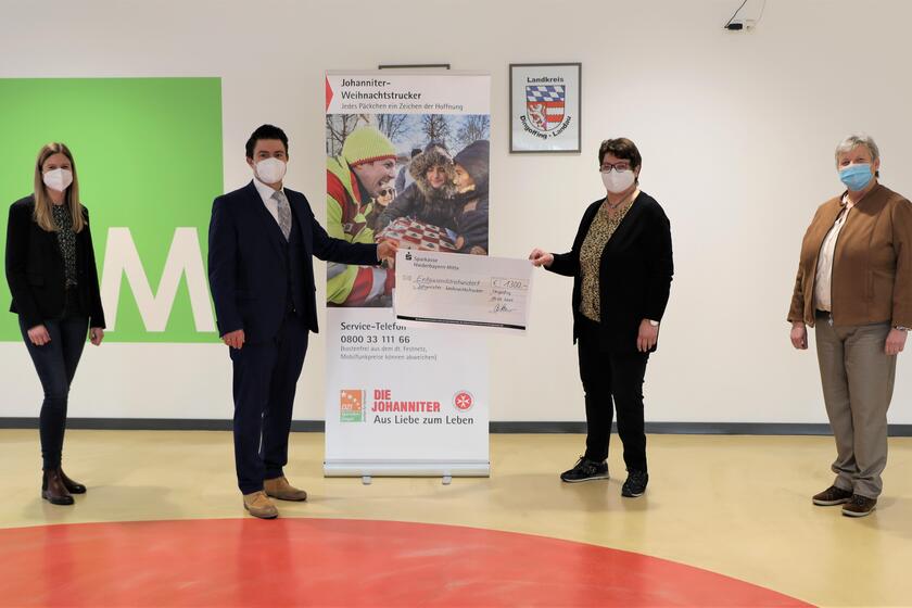 Den Spendenscheck haben Schulleitung Angela Saller und die beiden Lehrerinnen Andrea Jakisch und Rita Bumes nun an Andreas Denk, Pressesprecher der Johanniter in Ostbayern, für den Johanniter-Weihnachtstrucker überreicht. „Die Summe wird komplett für das Packen weiterer Päckchen verwendet werden. Ein großer Dank gilt Ihren engagierten Schülerinnen und Schülern, die damit einen wertvollen Beitrag für die Johanniter-Weihnachtstrucker leisten“, so Andreas Denk beim Übergabetermin in Dingolfing.