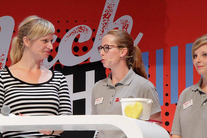 …drei Johanniter aus drei unterschiedlichen Berufen plauderten heute auf der großen Showbühne auf der IdeenExpo aus dem Nähkästchen.