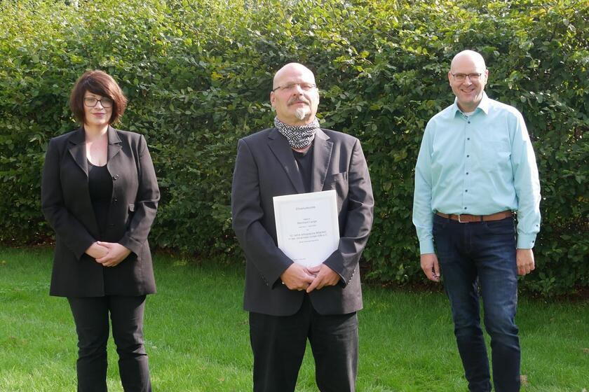 Wer schafft das heute noch? Seit über vier Jahrzehnten ist Bernhard Lange im Rettungsdienst bei der Johanniter-Unfall-Hilfe beschäftigt und geht immer noch mit Engagement in jeden Dienst. Grund genug für die Johanniter im Ortsverband Aller-Leine, das außergewöhnliche Jubiläum mit einer offiziellen Feier zu würdigen. Neben den Mitgliedern der Dienststellenleitung, Klaus Kramer und Marc Nieber, kamen auch der Ortsbeauftrage Hermann Völker und dessen Stellvertreter Jochen Helle-Feldmann zur Ehrung in den Garten des Johanniter-Zentrums in Schwarmstedt, um Bernhard Lange für seine langjährige Treue und sein außerordentliche Engagement als erfahrener Rettungsmitarbeiter zu danken.