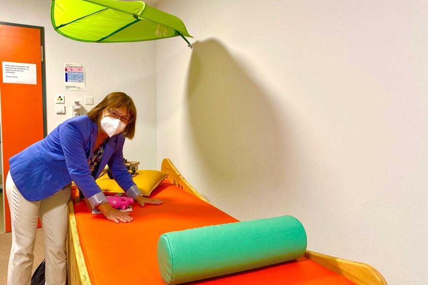 Dabei informierten Daniela Konzack (Einrichtungsleiterin Kinderhaus Pusteblume), David Kreuziger (Landesvorstandsmitglied Berlin/Brandenburg) und Andreas Berger- Winkler (Regionalvorstandsmitglied Südbrandenburg) die Ministerin bei einer Führung durch unser Haus über unsere palliativ- und intensiv-medizinische Versorgung. Weiterhin stellen wir das Klangbett vor, welches wir durch die Lotto-Mittel des MSGIV finanziert bekamen.