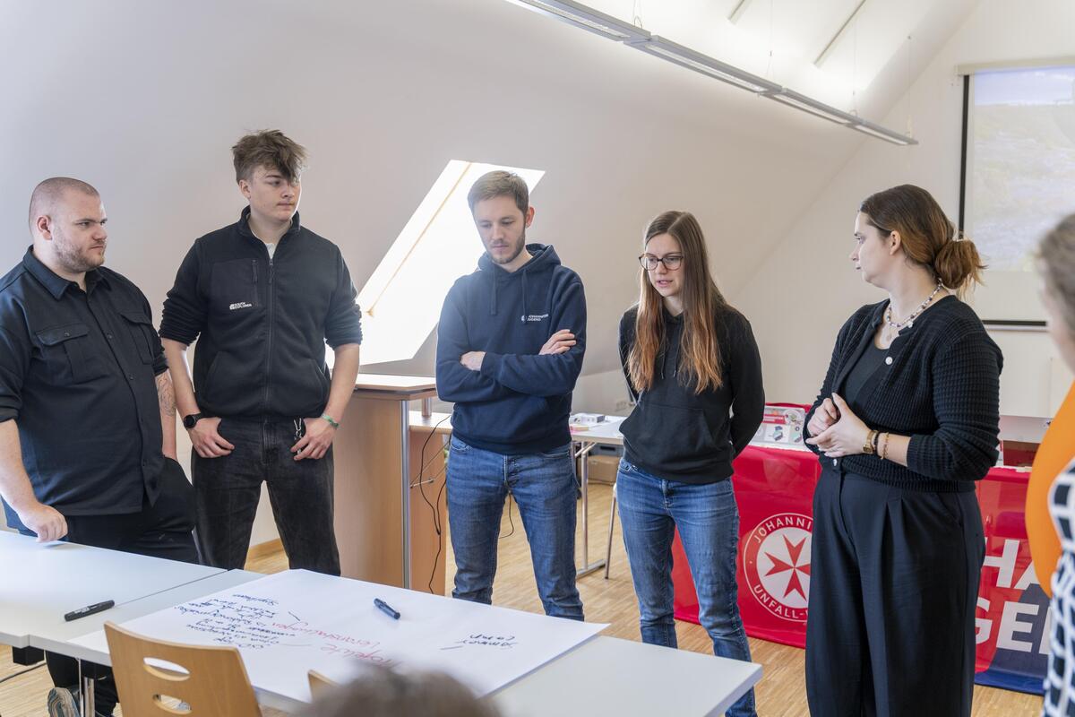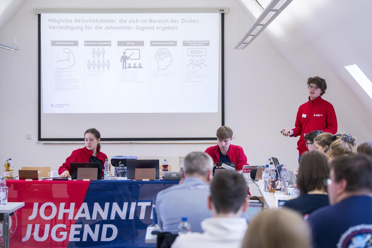 Im Tagesordnungspunkt "Zivile Verteidigung" berichtete die Bundesjugendleitung von aktuellen Entwicklungen in der Zusammenarbeit von JUH und der Bundeswehr sowie von Überlegungen der Jugendverbände der H7 in dem Bereich tätig zu werden. Dabei ging es vor allem um Themen wie Resilienzfähigkeit, Demokratie und gesellschaftliche Beteiligung, Bildung, psychische Gesundheit und Aufklärung.