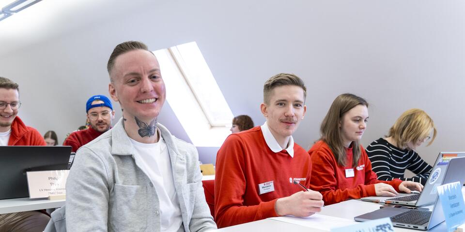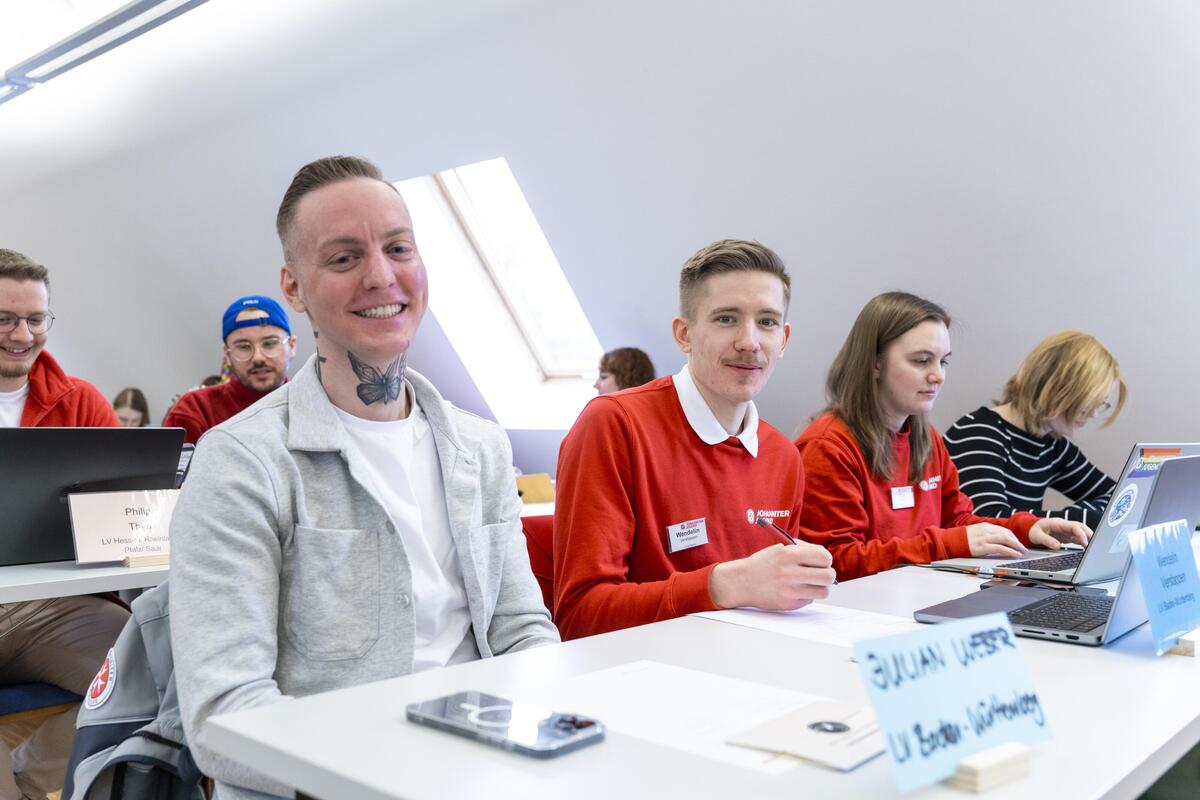 Die Versammlung mit rund 50 Teilnehmenden wurde pünktlich durch die Bundesjugendleitung eröffnet. In seinen Eröffnungsworten nahm Bundesjugendleiter Markus Bezug auf die Geschehnisse und den jüngsten Anschlag in Mannheim. Als örtliche Vertreter nahmen Reiner Fleischer und Marcel Weber, beide Mitglieder im Regionalvorstand Baden, sowie Arne Maaß, Sachgebietsleitung Jugendarbeit im Regionalverband Baden, an der Bundesjugendversammlung teil. Die Vorstände zeigten sich in ihren Grußworten beeindruckt von der Professionalität der Versammlung, das Engagement der JJ betone das Gute und verdränge das Schlechte. Per Videobotschaft schloss Christian Meyer-Landrut, Mitglied im Bundesvorstand, an und betonte wie wichtig es sei, eine laute Stimme für Demokratie zu erheben und dass die JUH stolz darauf sein könne, dass die JJ dies täglich engagiert tue.