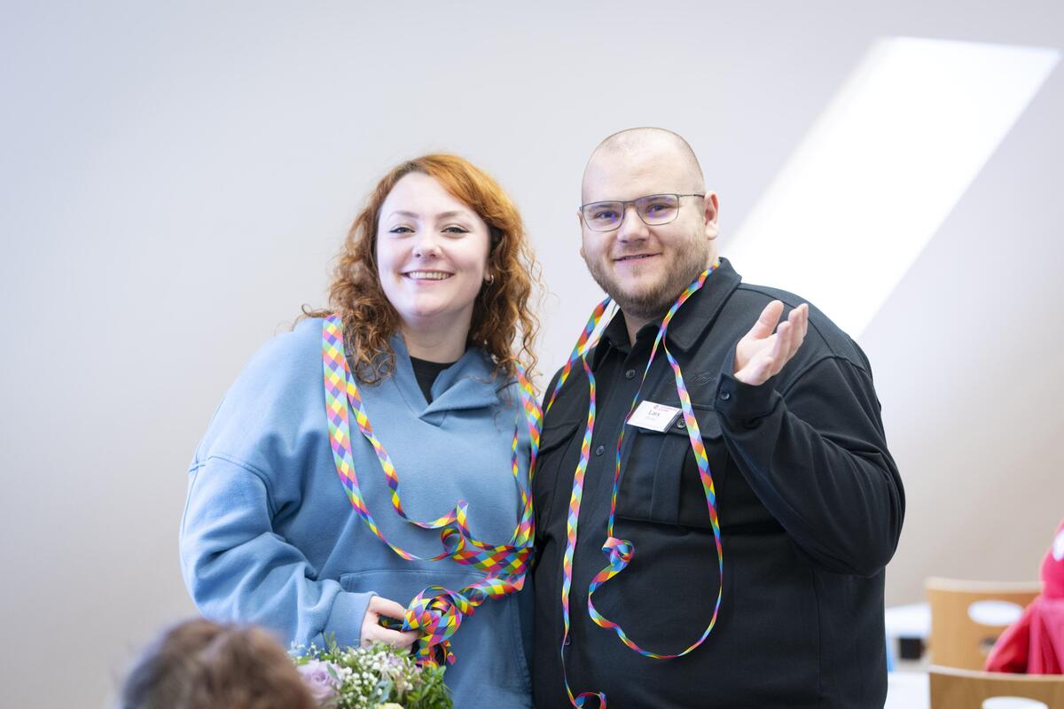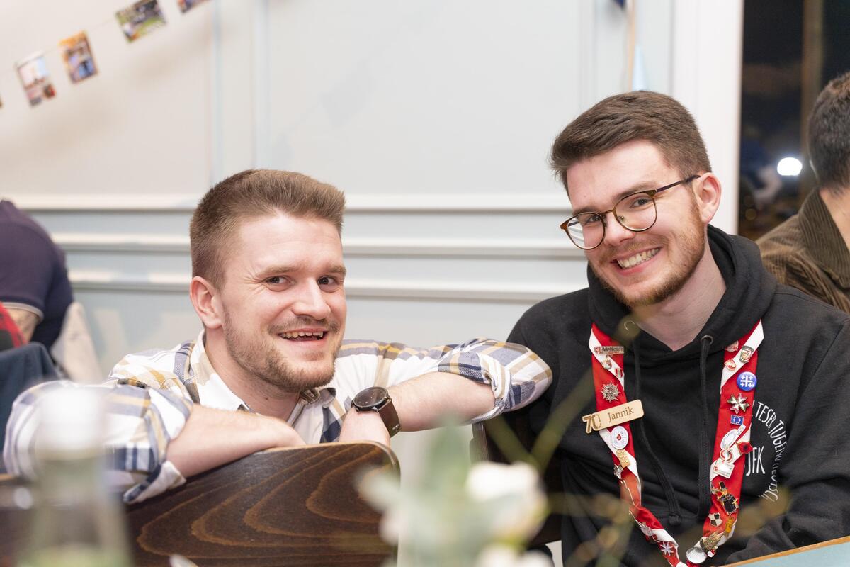 Die Versammlungsteilnehmenden, ehemalige Mitglieder der Bundesjugendleitung, Wegbegleiter*innen aus den Amtszeiten und der Zeit in der JJ, Vertreter*innen anderer Verbände, Freund*innen und viele mehr warteten auf die beiden. Im gemütlichen Rahmen, bei gutem Essen und etwas Musik wurde der Moment genutzt, um beiden für ihr herausragendes und unermüdliches Engagement in der Bundesjugendleitung zu danken. Ein kleines Orgateam leitete durch den Abend. Dankesreden wurden geschwungen, alte lustige und spannende Anekdoten erzählt und Bilder gezeigt. Wertschätzung, positive Emotionen und ein bisschen Wehmut zeichneten den wirklich schönen Abend aus. Zum Abschluss des Rahmenprogramms haben Markus und Svenja für ihre Leistungen das Jugendleistungsabzeichen Gold verliehen bekommen. Gratulation!