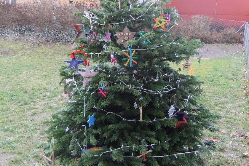 Ein gemeinsames Schmücken, das am Ersten Dezember beginnt und bis zum 18. Dezember andauert. Die Kinder basteln die Sterne selbst, und eine Woche vor Heiligabend wird abgeschmückt und dann können sich Eltern und Kinder einen Stern aussuchen und für eine kleine Spende mit nach Hause nehmen.