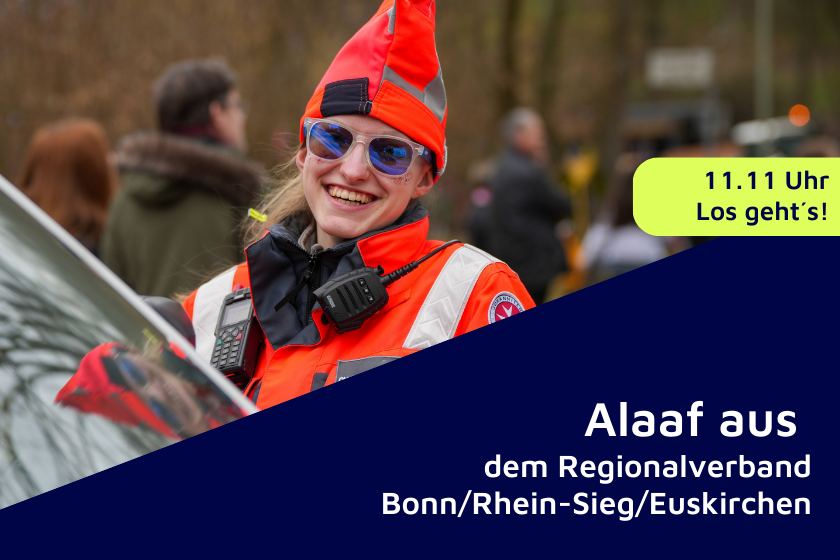 Die Teams aus dem Ortsverband Bonn und dem Ortsverband Much/Neunkirchen-Seelscheid begleiten unter anderem die Feiern in der Beueler Innenstadt, die Rathausstürmung in Much sowie verschiedene Sitzungen und Karnevalspartys in der Region. Auch bei den großen und kleinen Karnevalszügen – etwa in Seelscheid, Pohlhausen, Ründeroth, Lessenich-Meßdorf oder beim Rosenmontagszug in Bonn und Much – stehen sie bereit, wenn Hilfe gebraucht wird.