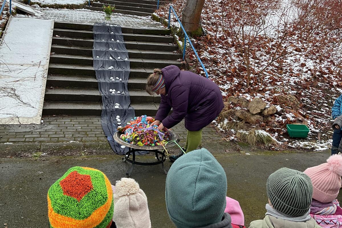 Die bunten Girlanden werden abgehängt und symbolisch verbrannt – aus bunt wird grau. Doch es bleibt nicht grau.