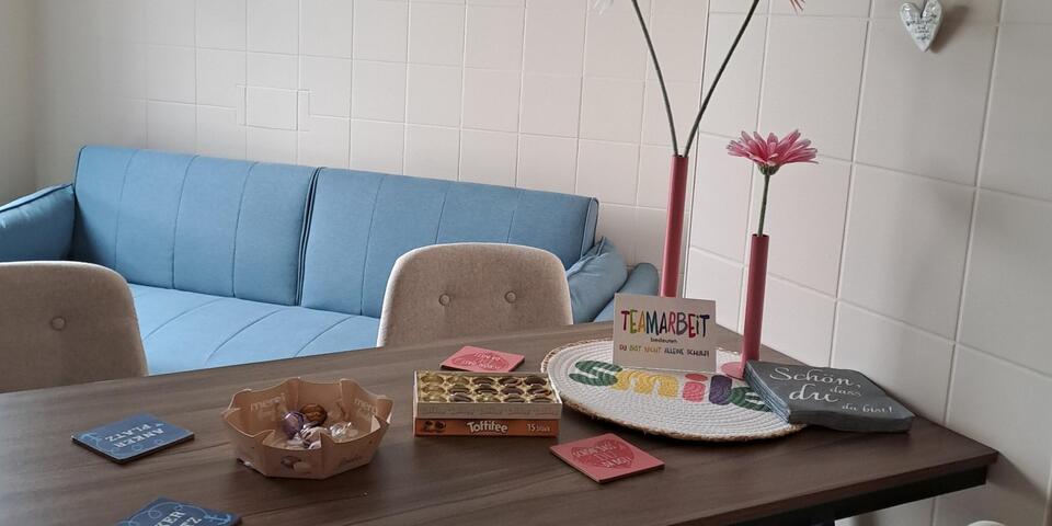 Ein neuer Pausenraum muss her – das war sich das Leitungsteam im Johanniter-Stift am Rosarium einig. Nach vielen heimlichen Planungen packten alle mit an und es entstand in Uetersen eine „Pausenoase“ der Extraklasse. „Ohne unsere Mitarbeitenden läuft es einfach nicht und auf diese Weise können wir als Leitungsteam aktiv unsere Wertschätzung zeigen“, so Susann Neumann die Einrichtungsleiterin. So wanderten still und heimlich über Wochen immer wieder Möbel und Dekoration in den Raum. „Ein paar Komplizinnen und Komplizen braucht man, um das alles zu organisieren, Auswahl der Möbel und Aufbau und natürlich auch Dekoration“, so Neumann.