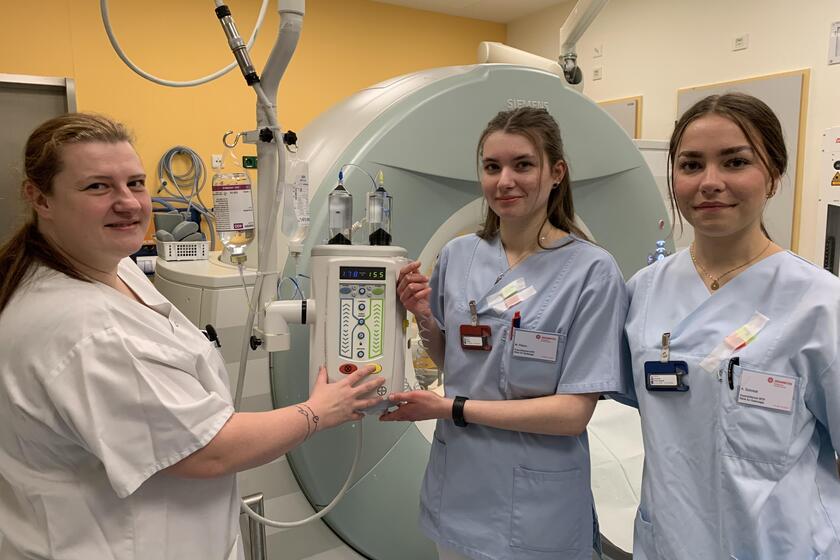 Ein halbes Jahr Ausbildungszeit liegt hinter Maresa Peters und Anna Schmidt. Die jungen Frauen erlernen im Johanniter-Krankenhaus Stendal den Beruf derMedizinischen Technologin für Radiologie (MTR). „Wir sind herzlich aufgenommen worden“, erzählen die beiden Azubis übereinstimmend. „Wir lernen etwa den Umgang mit MRT, CT und Röntgenapparat, haben dabei im Radiologie-Team viel Spaß. Jeder Tag ist anders. Die Zeit vergeht wie im Fluge“, schwärmen sie. Bald bekommen Maresa Peters und Anna Schmidt Azubi-Kolleginnen oder –Kollegen. Denn die Ausschreibung für den kommenden Ausbildungsstart Anfang September 2024 läuft.