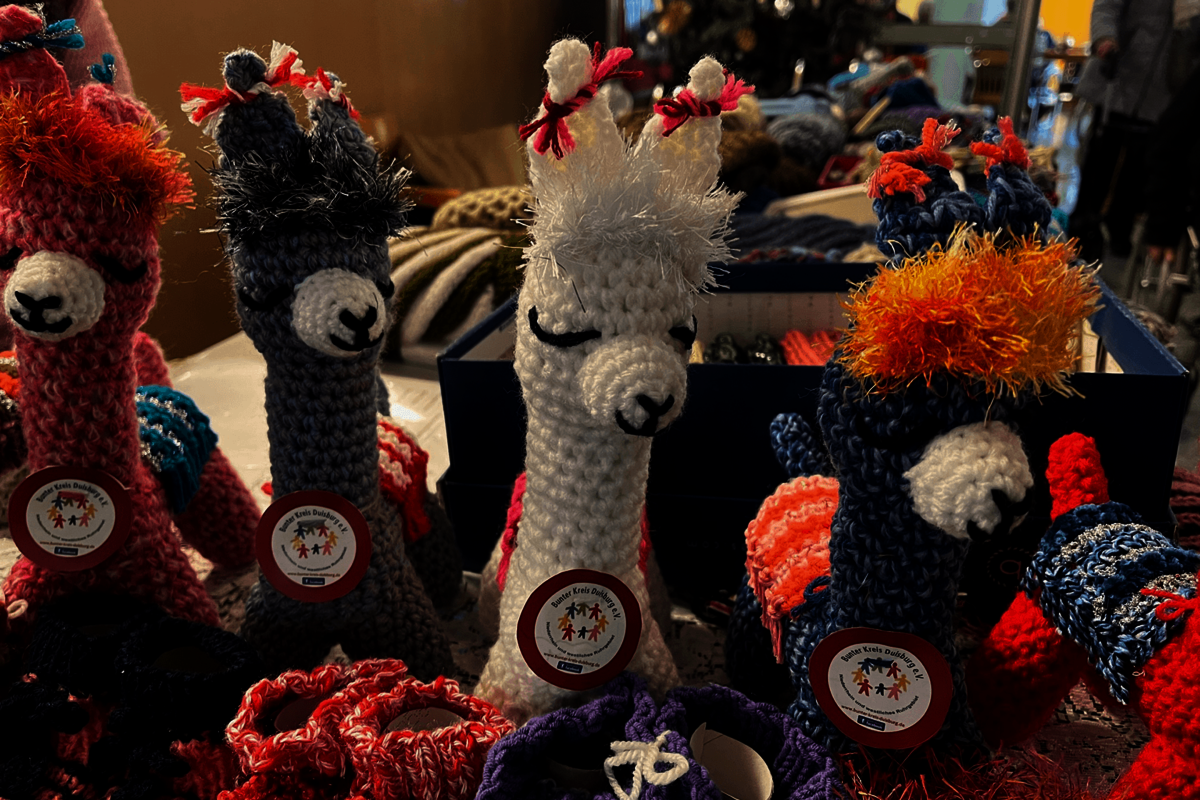 Frau Kappes vom Bunten Kreis brachte auch etliche selbstgehäkelte Alpakas mit, die sie mittlerweile in Unmengen anfertigt: „Die Nachfrage ist so groß - das ist in meinem Alter kaum noch zu schaffen! Alle sind Unikate, und haben immer einen besonderen Blick“, schmunzelte die Kreative.