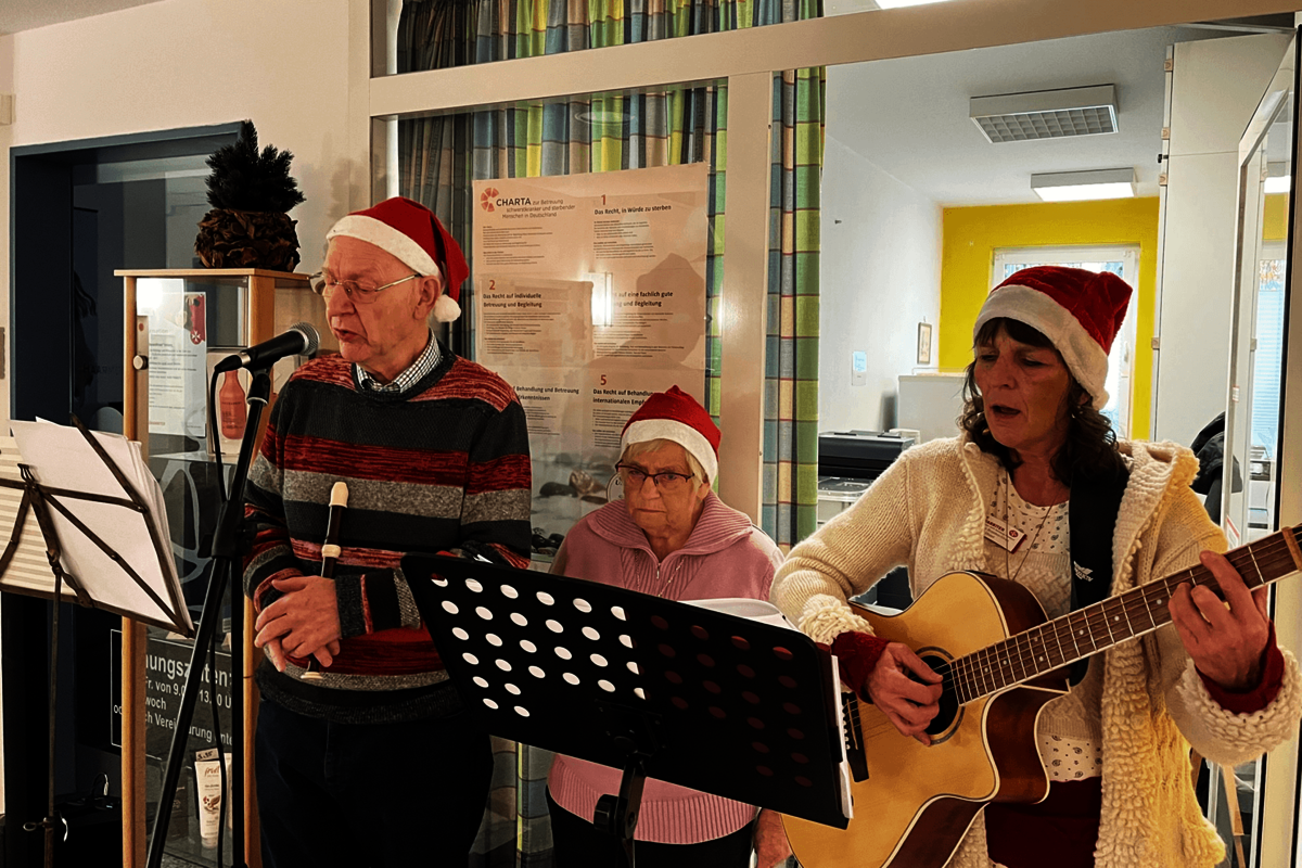 Musikalisch läutete das Ehepaar Klosendorf mit Barbara Brambor-Sliwa den Advent ein. Mit Flöte, Gitarre und Gesang ertönten beliebte Weihnachtslieder im Foyer, die zum Mitsingen einluden.
