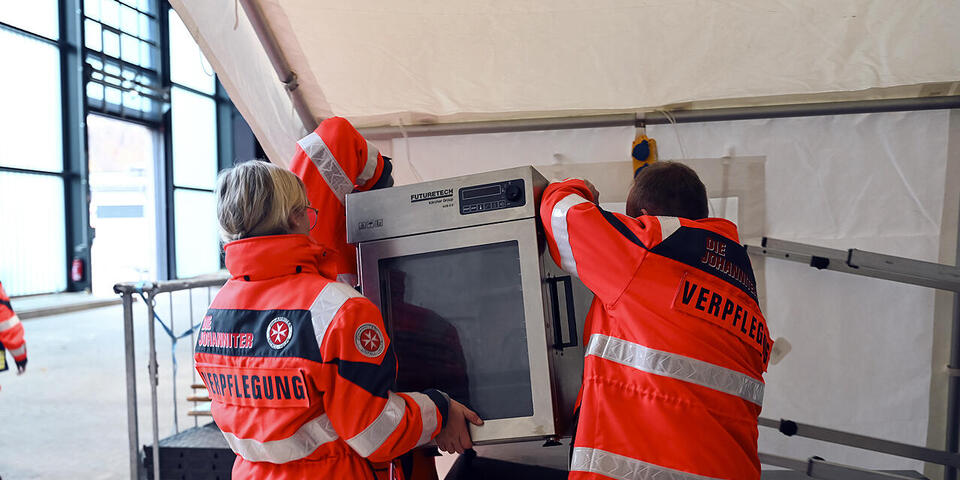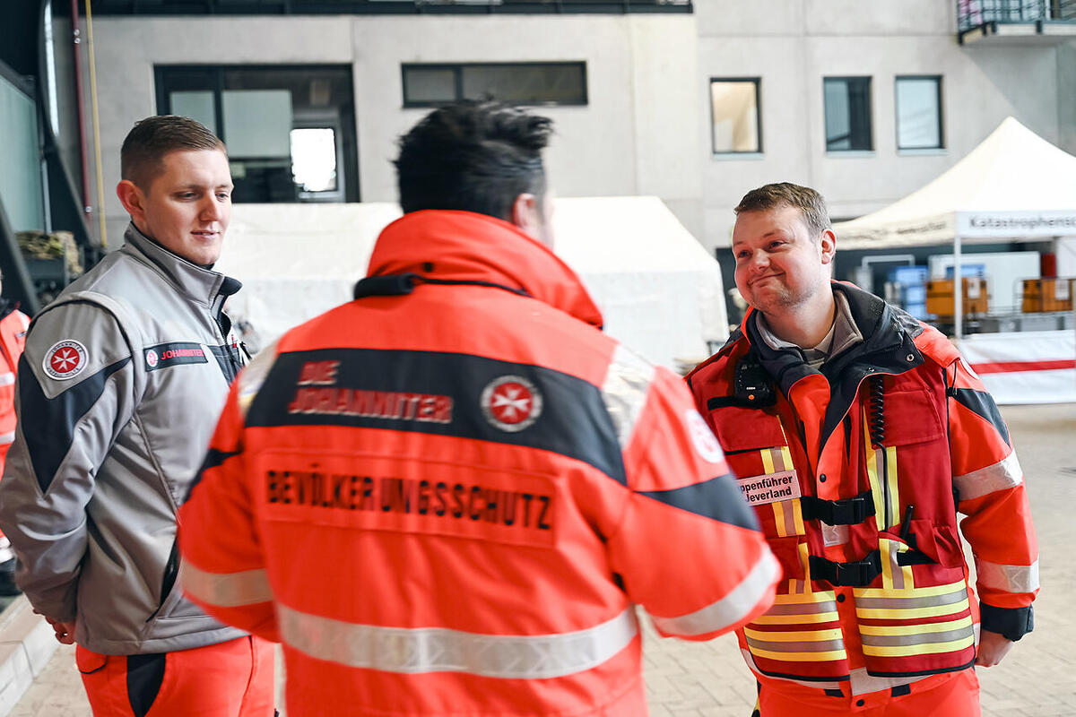 2017 beschloss das Land Niedersachsen, eigene Einheiten für den Katastrophenschutz als Ergänzung zu den kommunalen Einheiten aufzubauen. Eine dieser Einheiten ist „JUH-02 Weser-Ems“ des Regionalverbandes Weser-Ems der Johanniter-Unfall-Hilfe, die einen von zwei Behandlungsplätzen 50 (BHP 50) in Niedersachsen stellt. Dieses sogenannte Einsatzkontingent kann im Katastrophenfall nahe des Einsatzortes aufgebaut werden und bis zu 50 Patientinnen und Patienten pro Stunde behandeln. 2018 wurde das erste Fahrzeug für dieses Kontingent ausgeliefert, im Frühjahr 2025 wurde der Aufbau mit Auslieferung des letzten von insgesamt 21 Fahrzeugen abgeschlossen. Am Wochenende haben auf dem Gelände des Niedersächsischen Landesamtes für Brand- und Katastrophenschutz (NLBK) in Loy die Johanniter erstmals in Niedersachsen den BHP 50 im Rahmen einer Aufbauübung errichtet, um das Zusammenspiel der unterschiedlichen Teileinheiten zu proben. Beteiligt waren mehr als 100 Einsatzkräfte aus ganz Weser-Ems, begleitet wurde die Übung von rund 20 Beobachtern. „Wir sind erstaunt, wie schnell das alles ging“, lobte Marcel Colter, Bereichsleiter Einsatzdienste im Regionalverband Weser-Ems der Johanniter-Unfall-Hilfe und Mitglied des Stabes außergewöhnlicher Ereignisse (SAE). „Man sieht, dass sich die einzelnen Einheiten bereits gut mit dem Material vertraut gemacht und den Aufbau ihres Teiles geübt haben.“